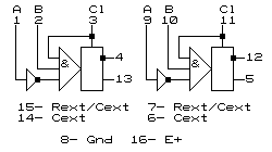 обкладка таймирующей емкости подключается к выводу Rext/Cext, а отрицательная