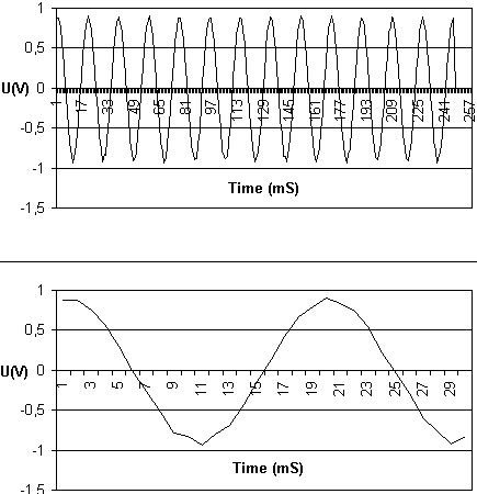 же сигнал представляет в двух видах: 256 точек в кадре и первые 30 точек.