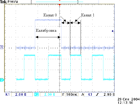 интегрирования 20 мсек. Из осциллограммы видно, что процедура калибровки