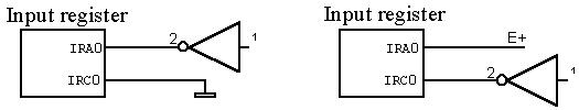 Ниже приводятся две схемы соединения входного регистра с источником напряжения