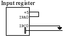 Входной регистр предназначен для передачи в компьютер цифрового значения "включено/выключено" в зависимости от наличия или отсутствия напряжения на входе регистра. При небольших схемотехнических хитростях возможно этим входом воспринимать состояние механического контакта (замкнуто/разомкнуто).