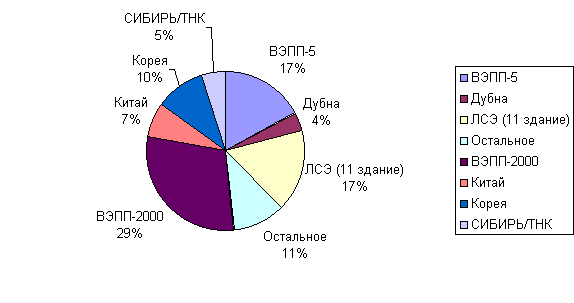 На сегодняшний день разработанные устройства применяются в самых различных системах, различных установках, в разных странах. Это можно проиллюстрировать следующими данными (в таблице и на картинке учитывается не вся институтская номенклатура, а только та, к которой имеет отношение докладчик). Данные приводятся на состояние к 1 января 2005 года.