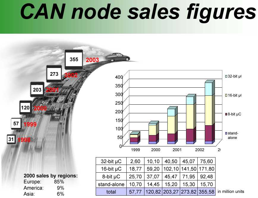 с интерфейсом CANbus, встраиваемых в оконечную аппаратуру. К 2005 году в