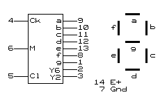 ИЕ3 представляет собой двоичный счетчик по модулю 6 с дешифратором в 7-сегментный