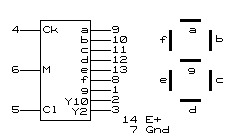 ИЕ4 представляет собой двоичный счетчик по модулю 10 с дешифратором в 7-сегментный