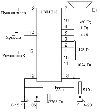 Микросхема 176ИЕ18 состоит из кварцевого генератора с внешним