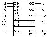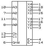 Четыре независимых аналоговых ключа. Расположение выводов идентично