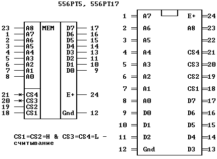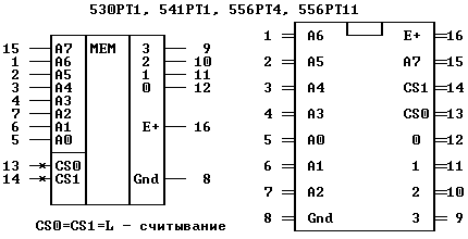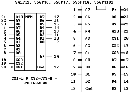 Расположение выводов микросхем ПЗУ
