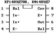 Резистор баланса (10 КОм) включается между выводами 1 и 5; его средняя точка- к выводу 4 (E-). |