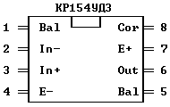 1 и 5; его средняя точка- к выводу 7 (E+). Емкость коррекции (3-10