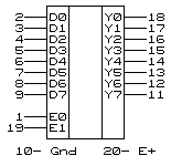 Все входы (кроме E0,E1) имеют встроенные триггеры Шмитта с гистерезисом