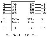 Схема состоит из двух 4-разрядных приемопередатчиков с тремя состояниями