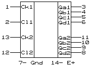 ИЕ19 представляет из себя 2 независимых 4-разрядных двоичных асинхронных счетчика